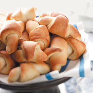Roll up wedges from the wide end and place point side down 2 in. apart on baking sheets coated with cooking spray. Curve ends to form crescents. Cover and let rise until nearly doubled, about 30 minutes.