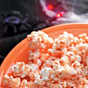 Remove from the heat. Stir in vanilla and food coloring. Pour over popcorn; toss to coat. Transfer to two 15-in. x 10-in. x 1-in. baking pans coated with cooking spray.