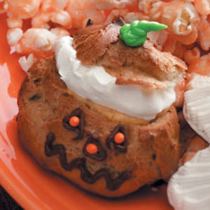 For filling, in a small bowl, beat the cream cheese, pumpkin, sugar and pie spice until smooth. Pipe into cream puffs. Top each with 1 tablespoon whipped topping; replace tops.