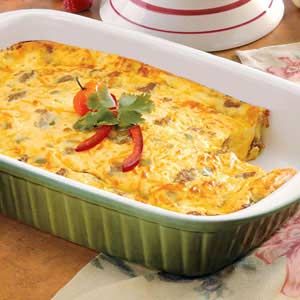 Pour into a 13-in. x 9-in. baking dish coated with cooking spray.