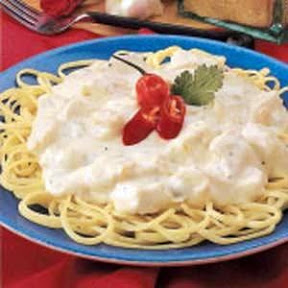 through. Drain linguine; top with chicken mixture. Yield: 6
