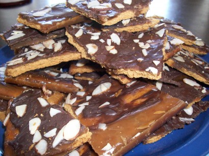 Line cookie sheet with foil; Butter lightly; Cover with graham crackers fit closely.