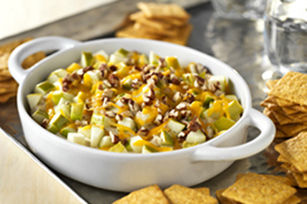 Spread onto bottom of shallow baking dish; top with remaining apples, cheddar and nuts.