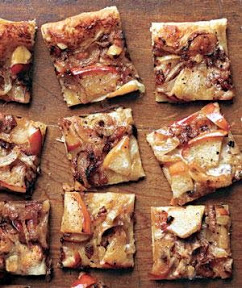 2.Place each sheet of pastry on a parchment-lined baking sheet and prick all over with a fork. Spread with the crème fraîche, leaving a ½-inch border. Top with the onion mixture and bake until the pastry is crisp and browned, 30 to 35 minutes. Cut into pieces before serving.