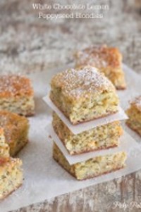 Place flour, sugar, chips, baking powder and salt into mixing bowl with melted chocolate. Stir to combine. Stir in eggs and lemon curd and poppyseeds. Stir until well combined. Transfer to prepared baking dish, spreading evenly. Bake for 30-35 minutes, until cooked through. Let cool completely then cut into squares. Serve warm, room temperature or chilled.
