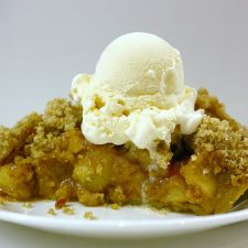 Bake at 350 degrees for at least 40 minutes. Depending on how many apples you put in and how juicy they were you may need to increase your time. If the top is getting too brown you can always tent it with foil.