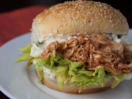 Shredded Buffalo Chicken Sandwiches with Blue Cheese Aioli