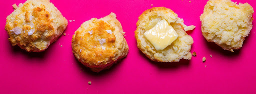 7. Sprinkle each biscuit with flaky salt and bake until golden on top, 12 to 15 minutes. Let cool slightly before serving. Make ahead: Dough can be made ahead, cut into biscuits, frozen on a sheet tray and transferred to a resealable plastic bag for up to a month.