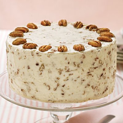 Spread Nutty Cream Cheese Frosting between layers and on top and sides of cake. Garnish, if desired.