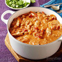 Reduce the heat to medium-low. Add the chicken and simmer, stirring occasionally, until the chicken is cooked through, about 5 minutes; season. Serve with the cilantro and lemon zest.