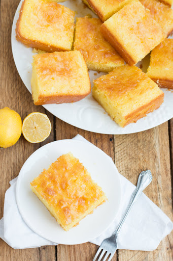 Bake at 350* for 27-30 minutes. When cake is done, prick with 2 tined fork while still hot. Immediately pour lemon icing over top. Icing