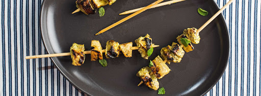 2. Make the skewers: Place the eggplants in a medium bowl and combine with ⅔ cup of the marinade. Place the onions in a separate medium bowl and toss with ⅓ cup of the marinade. Marinate both the eggplants and onions for 15 to 20 minutes at room temperature.