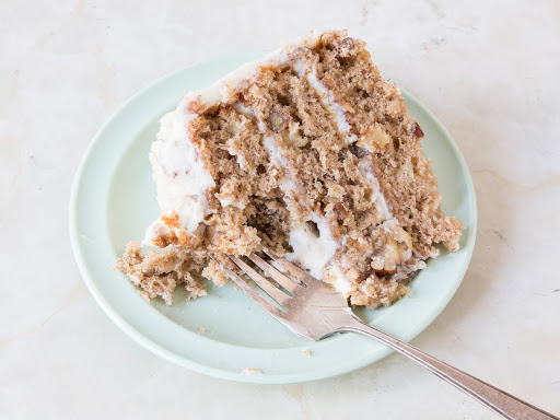 Assemble the cake: Place 1 cake layer on a cake stand. Using a butter knife, spread 2⁄3 cup frosting evenly over the top. Place second cake layer atop first one and frost top of it with another 2⁄3 cup frosting. Repeat with remaining cake layer. Spread remaining frosting over the sides of the assembled cake. Serve immediately or wrap loosely with plastic wrap and refrigerate.