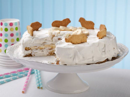 Spread one-third of the whipped cream on the bottom of the pan. Cover with half of the banana slices in concentric circles, then top with half of the animal crackers in concentric circles. Repeat with another layer of whipped cream, bananas and crackers. Finish with the remaining whipped cream. Wrap up the cake and refrigerate overnight to let the crackers soften.