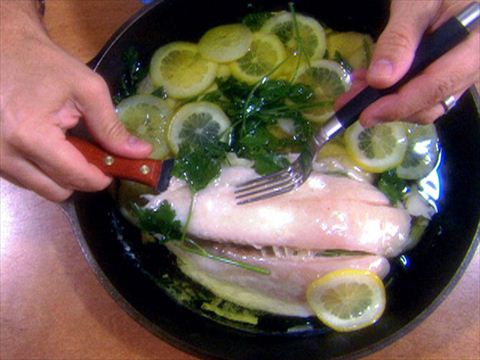 - 3 cups olive oil 1 1/2 to 2 pounds flounder fillets Kosher salt Freshly ground black pepper 2 lemons, thinly sliced 1 small bunch fresh parsley, thoroughly dried