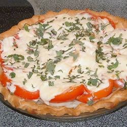 Slice onion and place in the bottom of pastry shell. Slice tomatoes and arrange over onions. Add black pepper to taste.