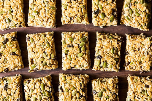 Press mixture into a shallow baking dish that you’ve lined with foil or saran wrap. Cover with more foil/saran, press well into the baking dish, and refrigerate for 4 hours. Cut into bar shapes, wrap, and keep refrigerated till ready to use. They will last two weeks in the fridge.