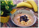 • banana and/or berries, fruit slices such as peach, nectarine, plum