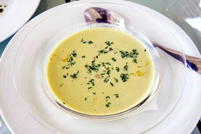 Sauté onion in melted butter until transparent, but not brown, 5-10 minutes. Add flour, cornstarch, paprika, salt, and pepper. Cook on low heat for about 10 minutes. Add half-and-half or milk and chicken stock; cook, stirring constantly, until thickened. Chop cooked vegetables very fine, or mash slightly; add to milk mixture. Adjust seasonings to taste. Just before serving, stir in shredded cheese and chopped parsley. Note: Amount of vegetable may be increased if thicker soup is desired. Use 1 cup added vegetables in 10-serving recipe. (Servings are based on one-cup amounts.)
