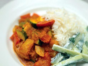 In a little vegetable oil, fry the onion gently for 10 minutes in a large pan then add the remaining vegetables and stir together. Add the curry base sauce and simmer gently for around 25 to 30 minutes, taking care not to overcook the vegetables. If the sauce becomes too thick, add a little water to give you the desired consistency.