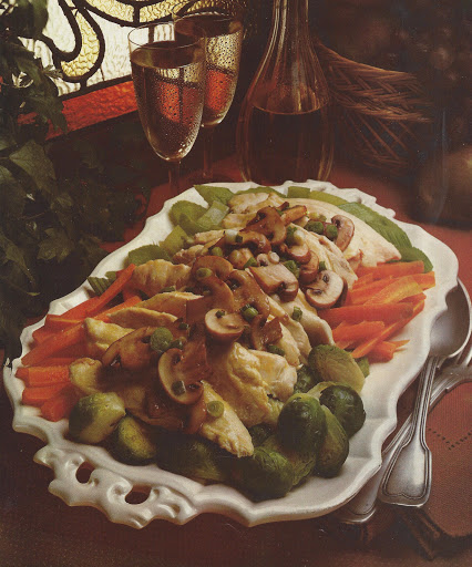 Arrange steamed vegetables and the chicken on a serving platter. Spoon mushroom mixture and sauce atop the chicken. Serve immediately.