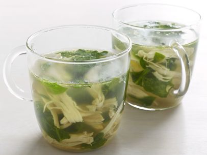 Remove the chicken from the soup and shred the meat, discarding the bones and skin. Strain the stock, discarding the solids, and return the liquid to the pot. Add the shredded chicken back into the stock, along with the spinach, and bring the soup to a simmer over medium-high heat. Serve immediately.
