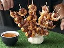 Soak 5 to 8 bamboo skewers in water for about 20 minutes to keep them from burning on the grill or under the broiler.