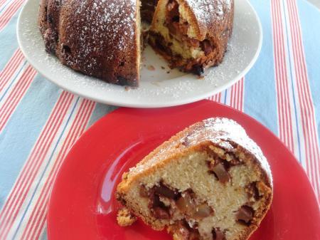 Grease and flour tube or Bundt pan. Put in layer of batter, then a layer of apple mixture, another layer of batter, another layer of apples, then finish with a layer of batter.