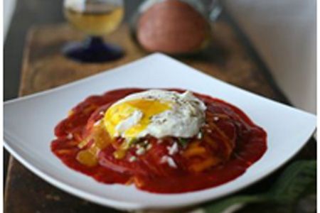 5. Heat a small non-stick skillet over medium-low heat. Fry the eggs over-easy and place one on each stack of enchiladas—optional, but oh so worth the try