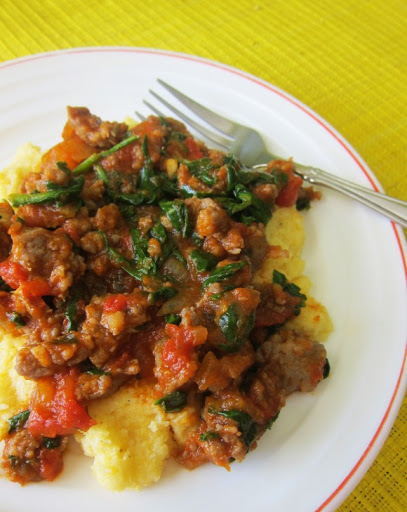 GROUND TURKEY****Turkey and Spinach Ragù on Parmesan Polenta