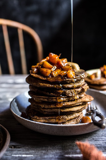Spiced Almond Pancakes with Candied Butternut Squash + Maple Butter
