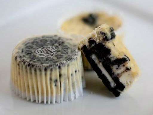 Divide batter evenly among cookie-lined cups, filling each almost to the top. Bake, rotating pan halfway through, until filling is set, about 22 minutes. Transfer to wire racks to cool completely. Refrigerate at least 4 hours (or up to overnight). Remove from tins just before serving. Best served really cold! You can garnish with fresh whipped cream and crumbled Oreos if desired.