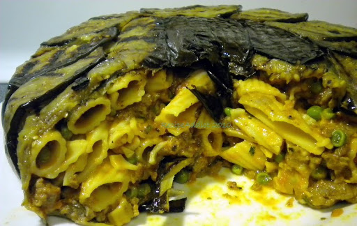 Preheat the oven to 350 degrees F. Line the springform pan with the grilled eggplant. Be sure that the slices overlap and hang over the edge of the pan. Sort of like a flower, making sure they overlap so that your filling doesn't leak out. Make sure to line the bottom well also, as this will become the top when inverted. Fill the pan with the pasta mixture, pressing down to make sure the pan is filling up evenly. Fold the eggplant slices up over the top of the pasta and add a few more slices on top to completely enclose the timbale. Bake until warmed through and the cheese has melted, about 30 minutes. Let rest on the counter for 10 minutes to set.