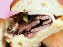 Slice 7/8 of the way through the rolls and fill each with several slices of the beef, cheese sauce, and any or all of the toppings. Return sandwiches to the grill, close top, and grill very briefly just to heat through.