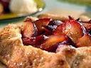 Remove pie crust from refrigerator 10 minutes before using to soften slightly. Line a baking sheet with parchment. Unfold pie crust onto baking sheet. Spread fig jam on crust leaving a 2-inch border around the edges. Place plums on top of the jam. Fold edges over leaving the center exposed and press slightly to seal. Brush outside of the pie dough with egg wash and sprinkle with sugar.