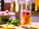In a pitcher combine strained liquid with 6 cups water and lemon juice. Chill in refrigerator.