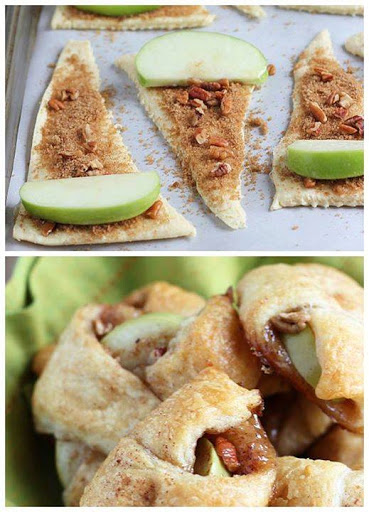Place an apple slice on the wide end of each triangle. Wrap crescent roll dough around each apple.