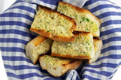 Stir together the butter, garlic, parsley and pepper until well combined. Cut the baguette in half horizontally and spread each cut side with the garlic butter, being sure to use every last bit. Sandwich the bread back together, wrap in a sheet of tin foil and put in the oven for 10 minutes. Turn on the broiler, unwrap the bread, evenly sprinkle the parmesan over both sides of the bread and broil until the cheese is melted and browned. Check after one minute. I burn mine by accident 50% of the time, so keep an eye out! Cut into pieces and serve.