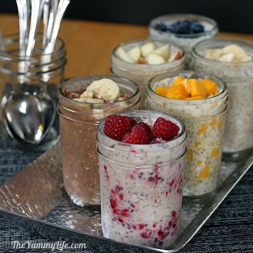- In a small mason jar, combine 3/4 cup unsweetened plain almond milk or 1% milk