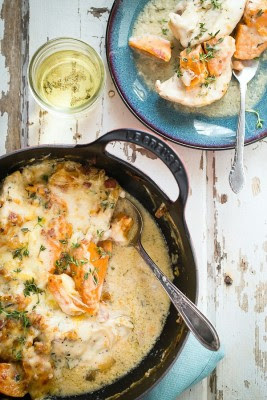 Sear the chicken for 2 minutes on each side and transfer everything from the pan to an oven-proof dish. I used a 10-inch casserole dish.