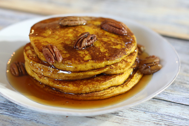 In another bowl, beat the eggs with 1 1/4 cups of milk, the canned pumpkin, 2 tablespoons of vegetable oil, and vanilla.