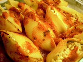 First preheat your oven to 350 and boil the shell pasta. You can make the filling in a food processor or you can just use your hand (that's what I did and it was somewhat tiring). If by hand, mash up the tofu until it resembles a firm ricotta cheese texture. I honestly didn't measure at all in this recipe so add the nut yeast - lemon juice ingredients to taste. In a casserole dish, spread out some tomato sauce. Fill the shells with a couple spoon fulls of the tofu filling and repeat. Finally, top with remaining tomato sauce and bake for 15-20 minutes. Makes for really great leftovers!