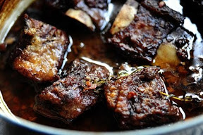 Serve 2 ribs on bed of creamy polenta, mashed potatoes or anything else that feels right at the moment. Spoon a little juice over the top.