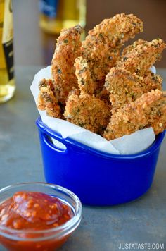 Place the flour on a plate. Season well with sea salt, freshly cracked pepper, and garlic powder, to taste. Mix well. Crack eggs in a shallow dish; beat until well combined. Pour the Panko and Parmesan on a plate and mix well.
