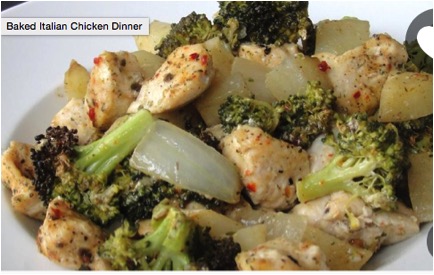 Spread chicken pieces, broccoli, and potatoes into the prepared baking dish, respectively. Drizzle melted butter over ingredients in the dish and season with the Italian dressing mix.