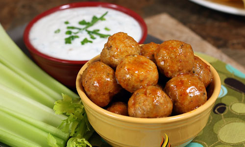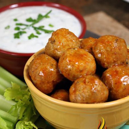 Chicken wings...in portable form! These spicy and delicious meatball poppers are perfect for hanging out with the family or to bring to a get together!