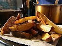 Fry the potatoes in batches for 5 to 7 minutes until golden brown. Drain on paper towels and season with salt immediately.