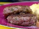 Place potato, onion, pork, parsley, thyme, salt and pepper in the food processor and pulse grind to form a sausage mixture. Heat a large nonstick skillet over medium heat with extra-virgin olive oil. When oil is hot, form 8 potato-sausage patties 3 inches wide, 1/2-inch thick, and set into skillet. Cook patties 6 to 7 minutes on each side until they are deeply golden brown in color.