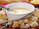 Mix cheeses together in mixing bowl with flour. Place wine in saucepan and bring to a simmer, being careful not to let it come to a boil. Gradually add cheese to wine, adding a handful at a time and stirring constantly until melted. After the last handful has melted, add the kirsch and freshly grated nutmeg, slowly stirring to incorporate. Transfer to fondue pot.