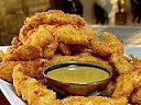 Fry in the hot peanut oil for 6 to 8 minutes, until golden brown, and remove to a paper towel lined sheet tray. Serve with honey mustard sauce.